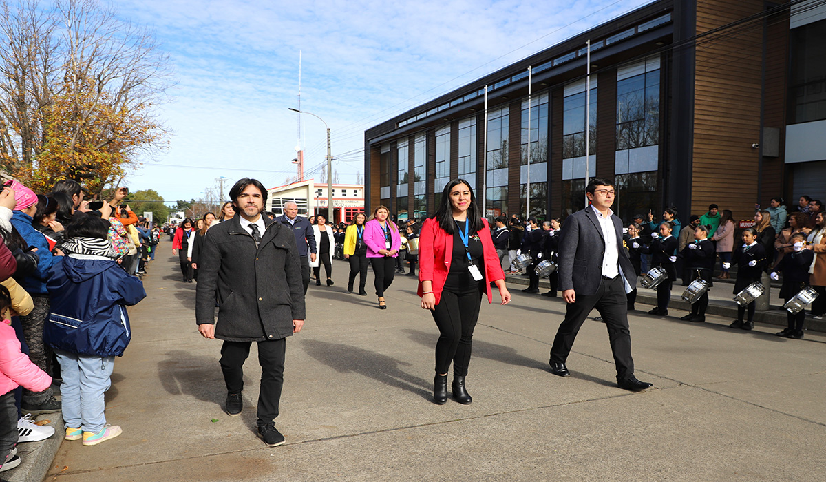 La jornada concluyó con un colorido desfile cívico, en el que participaron escuelas, liceos, agrupaciones deportivas, culturales, sociales y organizaciones comunitarias. La actividad fue acompañada por las bandas instrumentales del Liceo Municipal “Atenea”, la Escuela N° 3 Hermano Leovigildo Kley y el Liceo Politécnico “Santa Cruz”.