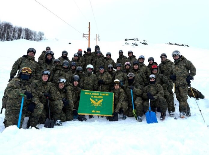 En medio de adversas condiciones climáticas en la alta cordillera, se desarrolló en el sector de Los Arenales, en Lonquimay, un simulacro de alud que dio término al curso “Auxilio, Rescate y Control de Avalancha” de la Escuela de Montaña del Ejército de Chile.