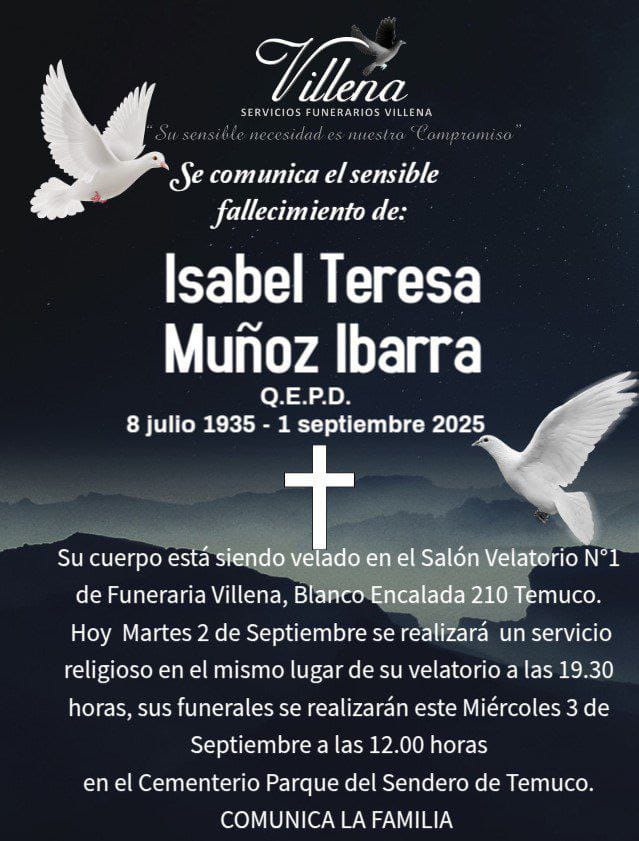 DEFUNCIÓN: Isabel Teresa Muñoz Ibarra