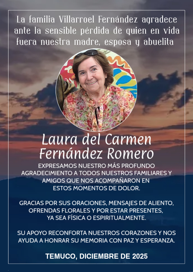 DEFUNCIONES AGRADECIMIENTOS: Laura del Carmen Fernández Romero 23 de Diciembre de 2025 FacebookTwitterPinterestWhatsApp