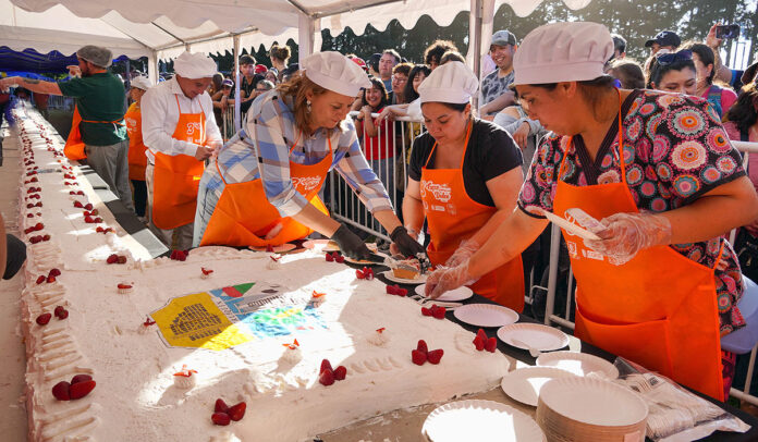 En la ocasión, la estrella será la elaboración de la torta de bizcocho más grande de Chile que alcanzaría los 70 metros de largo en una sola pieza. La torta comenzará su armado a contar de las 15 horas, para que a eso de las 17:30 horas, pueda ser medida, cortada y distribuida para la degustación gratuita de todos los comensales asistentes a esta fiesta culinaria.