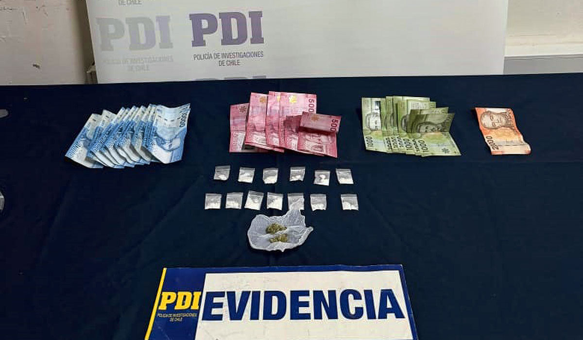 En el operativo, realizado en el sector céntrico de la comuna, los detectives sorprendieron al sujeto en el momento en que comercializaba droga dosificada, logrando incautar clorhidrato de cocaína, cannabis, dinero en efectivo y un teléfono celular, todo avaluado en mas de $300 mil.