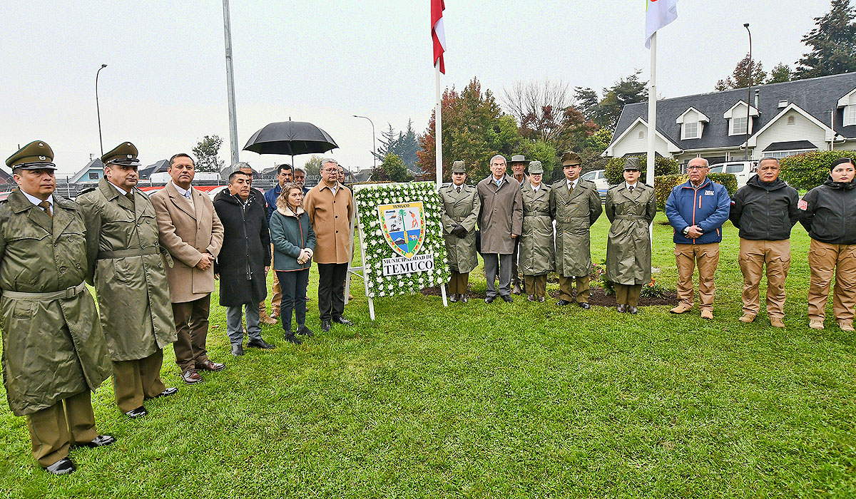 En el marco del 99° aniversario de Carabineros de Chile, la Municipalidad de Temuco realizó un homenaje a los mártires de la institución frente a la 8ª Comisaría, ubicada en el sector Barrio Inglés.